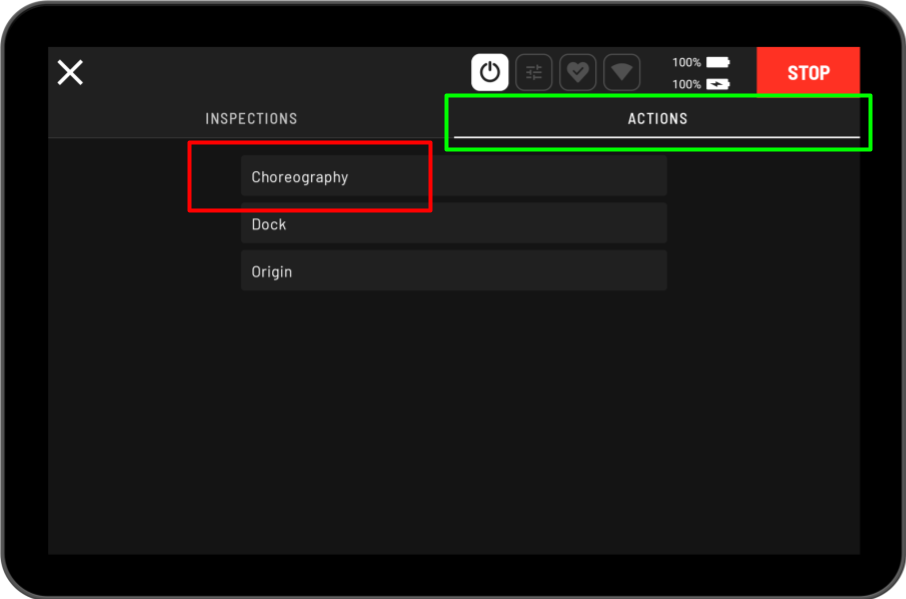 Only users with a Spot choreography license have access to choreography actions within the tablet autowalk application.